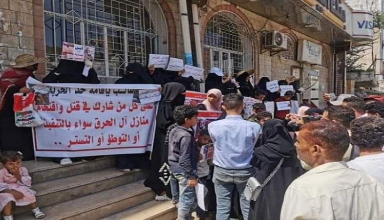 تعز: مظاهرة احتجاجية تنديدًا بتواطؤ مليشيا حزب الإصلاح مع قتلة أسرة الحرق