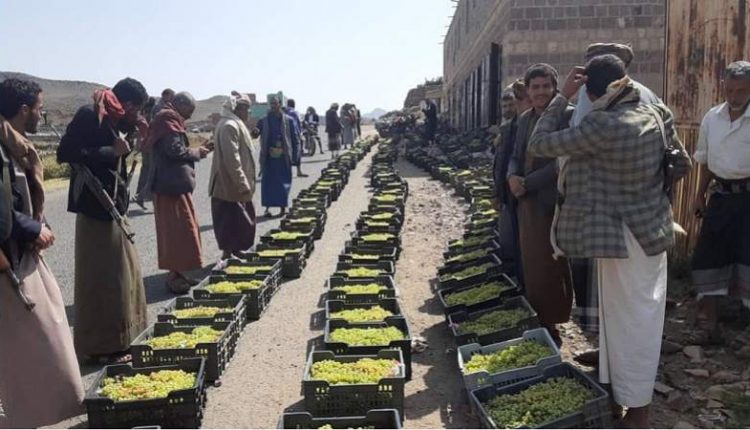 أبناء الضبعات بسنحان يسيرون قافلة أعناب دعما للجبهات