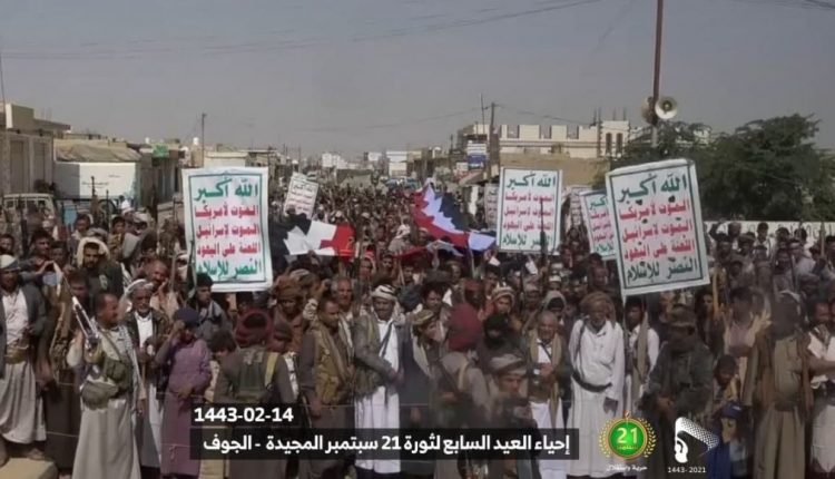 شهدت مدينة الحزم بمحافظة الجوف اليوم الثلاثاء ، مسيرة جماهيرية حاشدة بمناسبة العيد السابع لثورة الـ21 من سبتمبر المجيدة.
