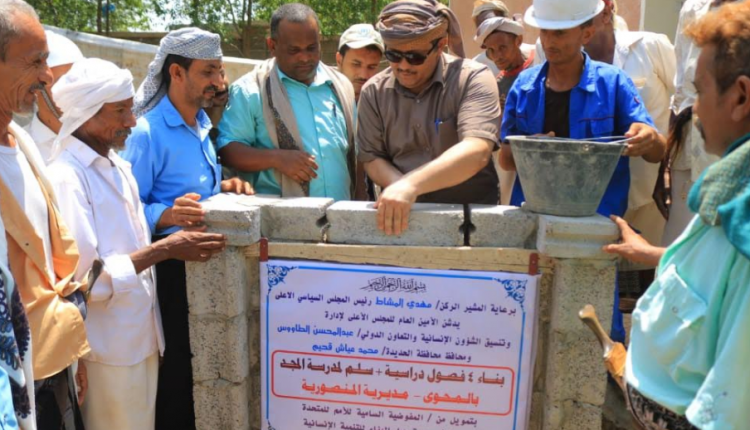 وضع مدير فرع المجلس الأعلى لإدارة وتنسيق الشؤون الإنسانية والتعاون الدولي بمحافظة الحديدة جابر الرازحي اليوم، حجر الأساس لمشروع إنشاء أربعة فصول دراسية بقرية المحوى مديرية المنصورية.