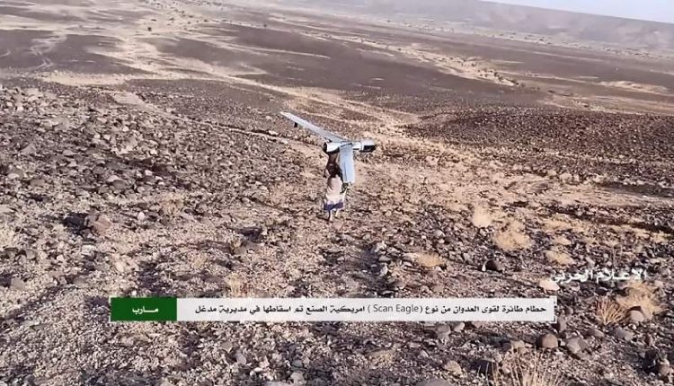 وكان متحدث القوات المسلحة العميد يحيى سريع قد أعلن يوم الاثنين الماضي، عن إسقاط الدفاعات الجوية لدى الجيش اليمني واللجان الشعبية، طائرة تجسسية أمريكية نوع (سكان إيغل) تابعة للعدوان السعودي الأمريكي في أجواء محافظة مأرب.