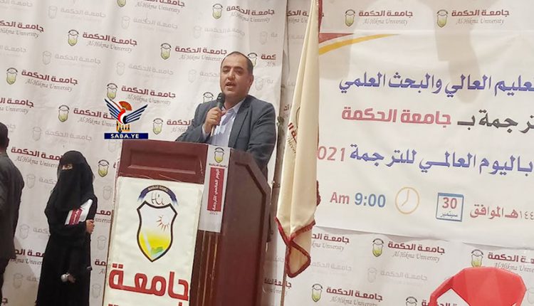 من جانبه أشار رئيس جامعة الحكمة الدكتور مختار دائل ، ورئيس قسم الترجمة الدكتور محمد المخلافي إلى تزامن اليوم العالمي للترجمة مع احتفالات بلادنا بأعياد ثورتي 21 و 26 سبتمبر و14 اكتوبر و30 نوفمبر وكذا بذكرى المولد النبوي الشريف .