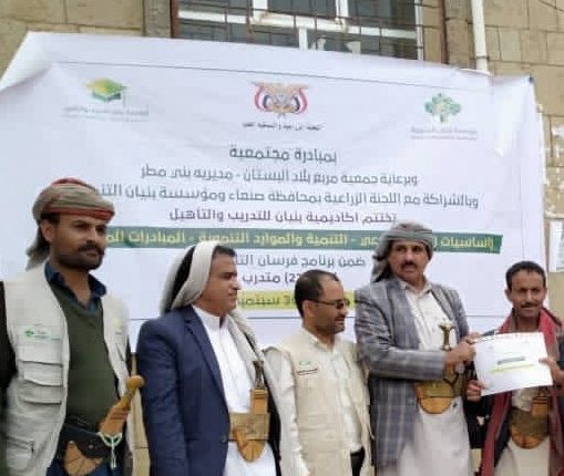 اختتمت في عزلة جنب بمديرية بني مطر محافظة صنعاء، دورة تدريبية، لفريق فرسان التنمية، نظمتها مؤسسة بنيان التنموية بالشراكة مع اللجنة الزراعية بالمحافظة والتنسيق مع أكاديمية بنيان للتدريب.