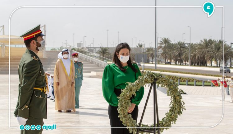 وظهرت الوزيرةُ الصهيونية، اليوم الثلاثاء، وهي تضعُ إكليلاً من الزهور أمام نصب ما يسمى “الشهيد” الإماراتي الذي يتكوّن من 31 لوحاً، (يستندُ كُلٌّ منها على الآخر كرمز للوحدة والتكاتف والتضامن بين قيادة دولة الإمارات وشعبها وجنودها الأبطال) حدَّ وصف صحيفة الرؤية الإماراتية.