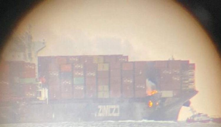 اندلع حريق في سفينة شحن تحمل مواد كيميائية خطرة على البيئة قبالة سواحل كولومبيا البريطانية المطلة على المحيط الهادئ قرب السواحل الكندية.