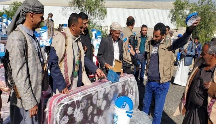 صنعاء: توزيع مساعدات إيوائية للنازحين بمديرية بني حشيش