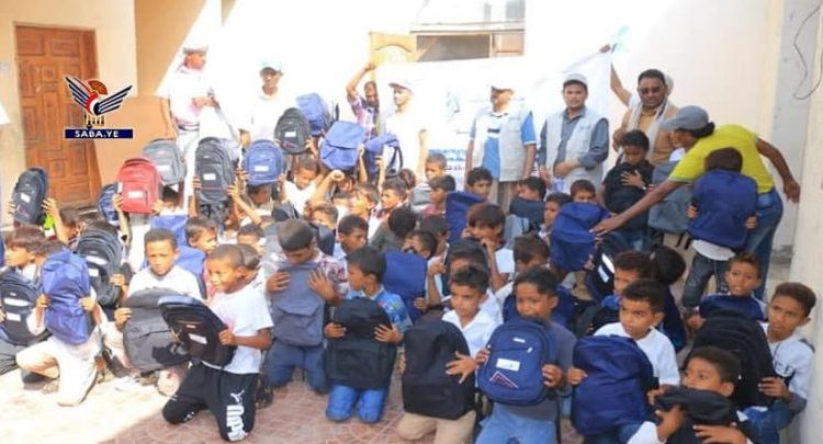 مؤسسة الريادة توزع 500 حقيبة مدرسية في جزيرة كمران بالحديدة