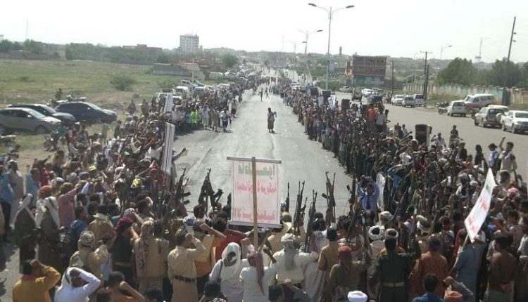 وقفة احتجاجية ومسيرة بالمربع الجنوبي بالحديدة تنديداً بجريمة إعدام الأسرى