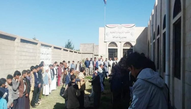 وقفة احتجاجية في مديرية مناخة بصنعاء تنديدا بجريمة مرتزقة العدوان بإعدام الاسرى