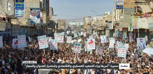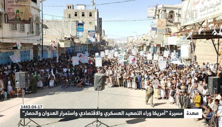 احتشد الألاف من أحرار ووجهاء وأعيان محافظة صعدة، اليوم، في مسيرة جماهيرية حاشدة تحت شعار “أمريكا وراء التصعيد العسكري والاقتصادي واستمرار العدوان والحصار”.