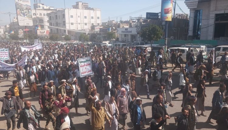 شهدت محافظة تعز اليوم مسيرة جماهيرية حاشدة في مفرق ماوية بمنطقة الجند تحت شعار “أمريكا وراء التصعيد العسكري والاقتصادي واستمرار العدوان والحصار “.