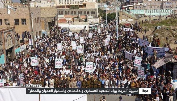 شهدت محافظة حجة اليوم الاثنين، مسيرة جماهيرية حاشدة تحت شعار (أمريكا وراء التصعيد العسكري والاقتصادي واستمرار العدوان والحصار).