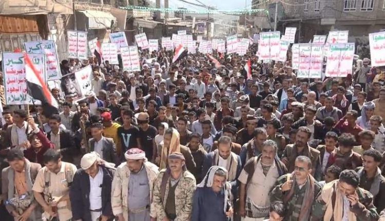 مهرجان جماهيري حاشد بمحافظة إب تنديدا باستمرار العدوان والحصار الأمريكي على اليمن
