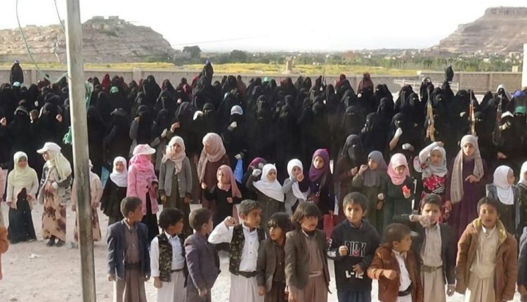 وقفة للهيئة النسائية في بني حشيش بصنعاء تنديداً بجريمة مرتزقة العدوان بحق الأسرى
