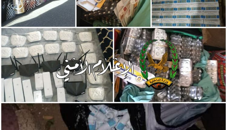 مكافحة التهريب بتعز تضبط كمية من الخمور والأدوية والبضائع الممنوعة والمهربة خلال الأسبوع المنصرم