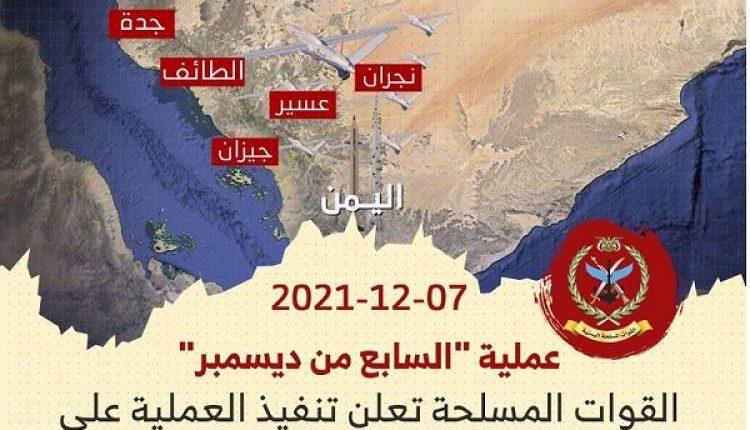 فعملية السابع من ديسمبر التي نفذتها القوات المسلحة اليمنية تعتبر هي الأكبر من حيث عدد الصواريخ والطائرات المسيرة ومن حيث عدد المناطق المستهدفة، إذ طالت 7 مناطق ومحافظات سعودية في وقت واحد في الرياضِ وجدة والطائفِ وجيزان ونجرانَ وعسير .