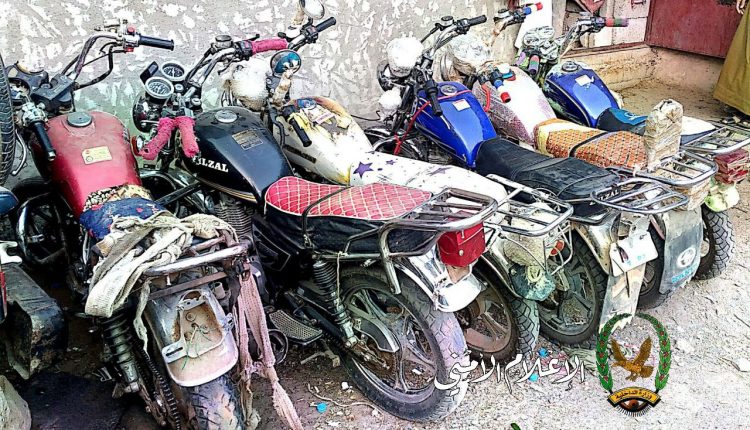 استعادت شرطة مديرية بني قيس بمحافظة حجة، عدد 6 دراجات نارية مسروقة وألقت القبض على المتهم بسرقتها المدعو (ص. أ. ص. ا. ا).