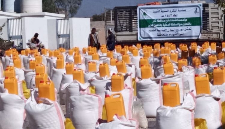 بالتعاون مع السلطة المحلية بتعز.. مؤسسة الشهداء توزع سلال غذائية لأسر الشهداء