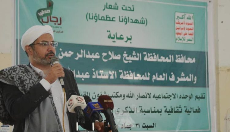 نظمت الوحدة الاجتماعية لأنصار الله ومكتب شئون القبائل والتلاحم القبلي اليوم فعالية ثقافية خطابية بمناسبة الذكرى السنوية للشهيد.