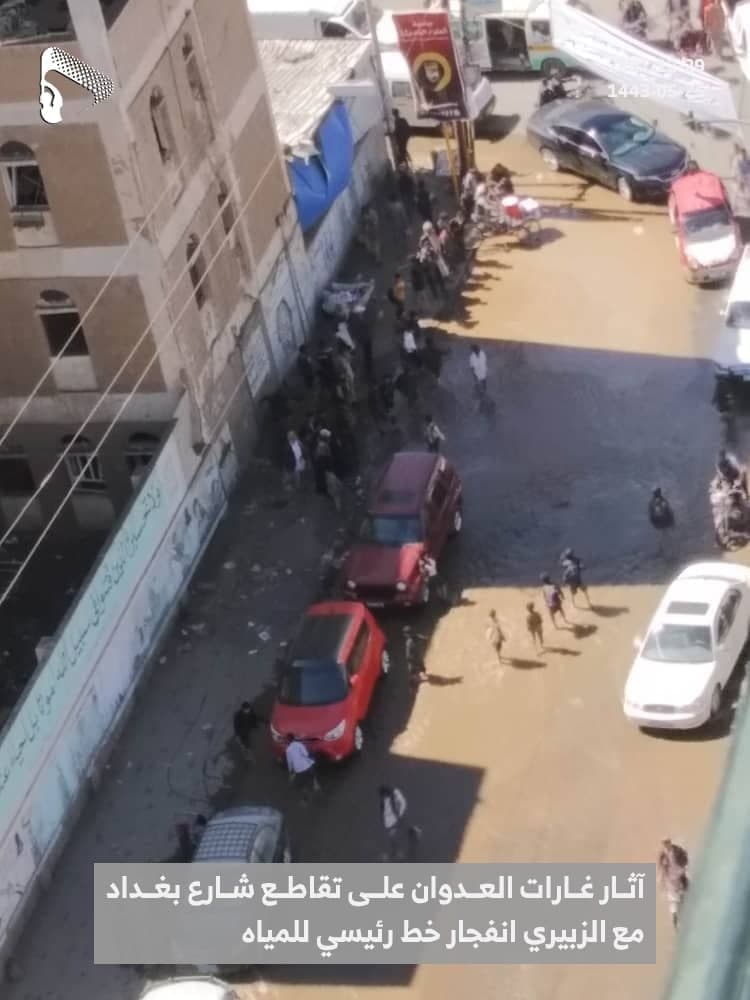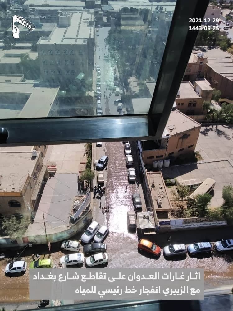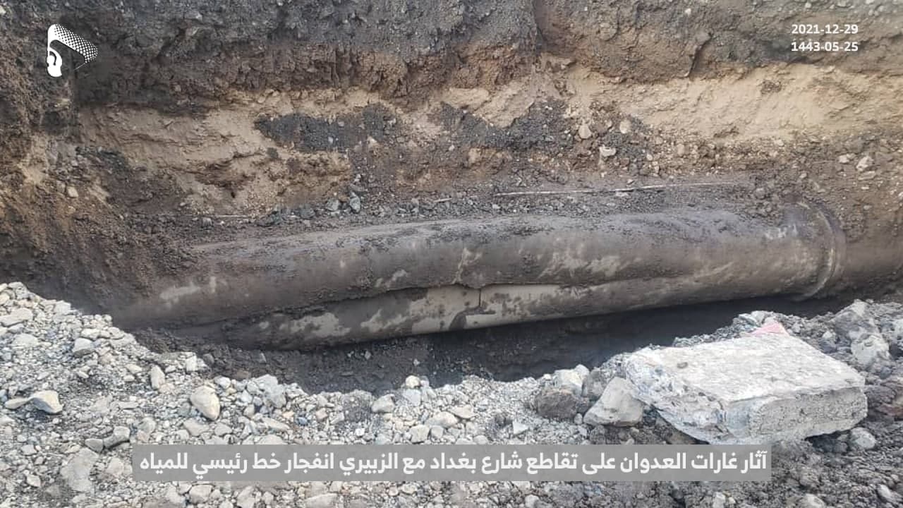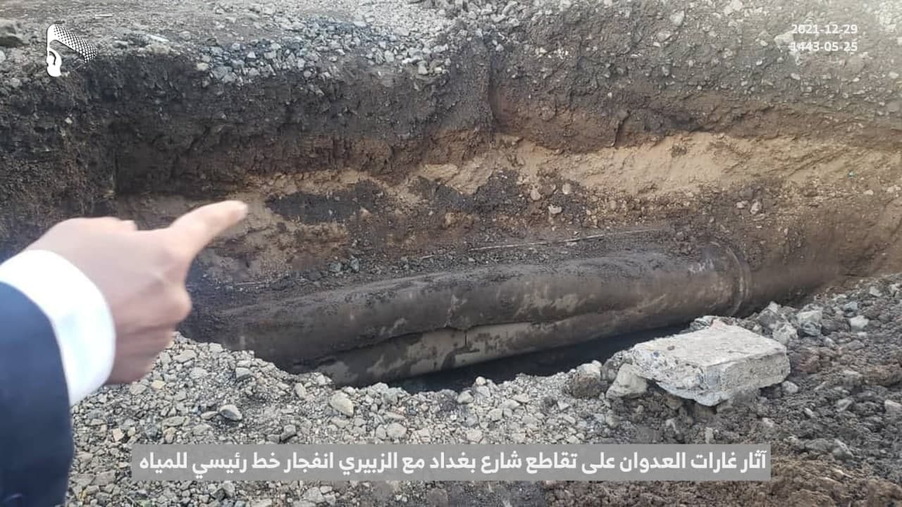 وأوضحت المؤسسة في بيان، أن العدوان استهدف الخط الرئيسي الناقل لشبكة المياه بشارع الزبيري مع بغداد، ما أدى إلى أضرار كبيرة في الشبكة وتوقف ضخ مياه الشرب للمواطنين في جميع أحياء وحارات منطقتي بغداد والزبيري.