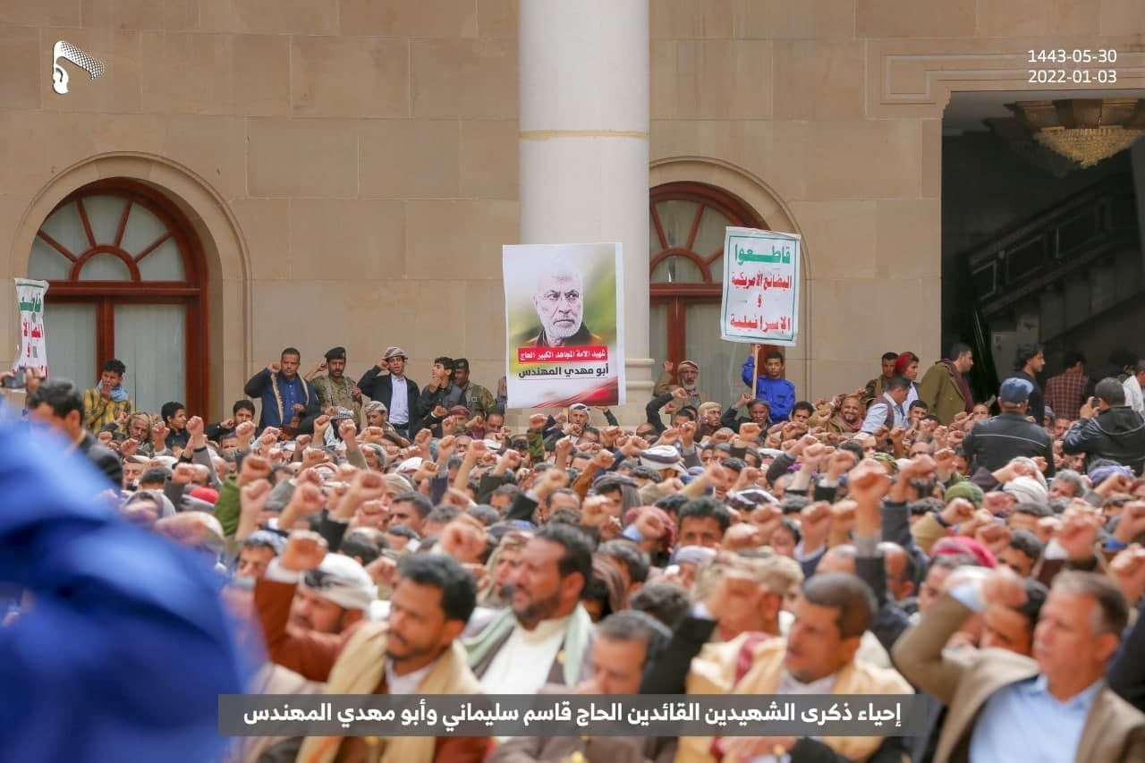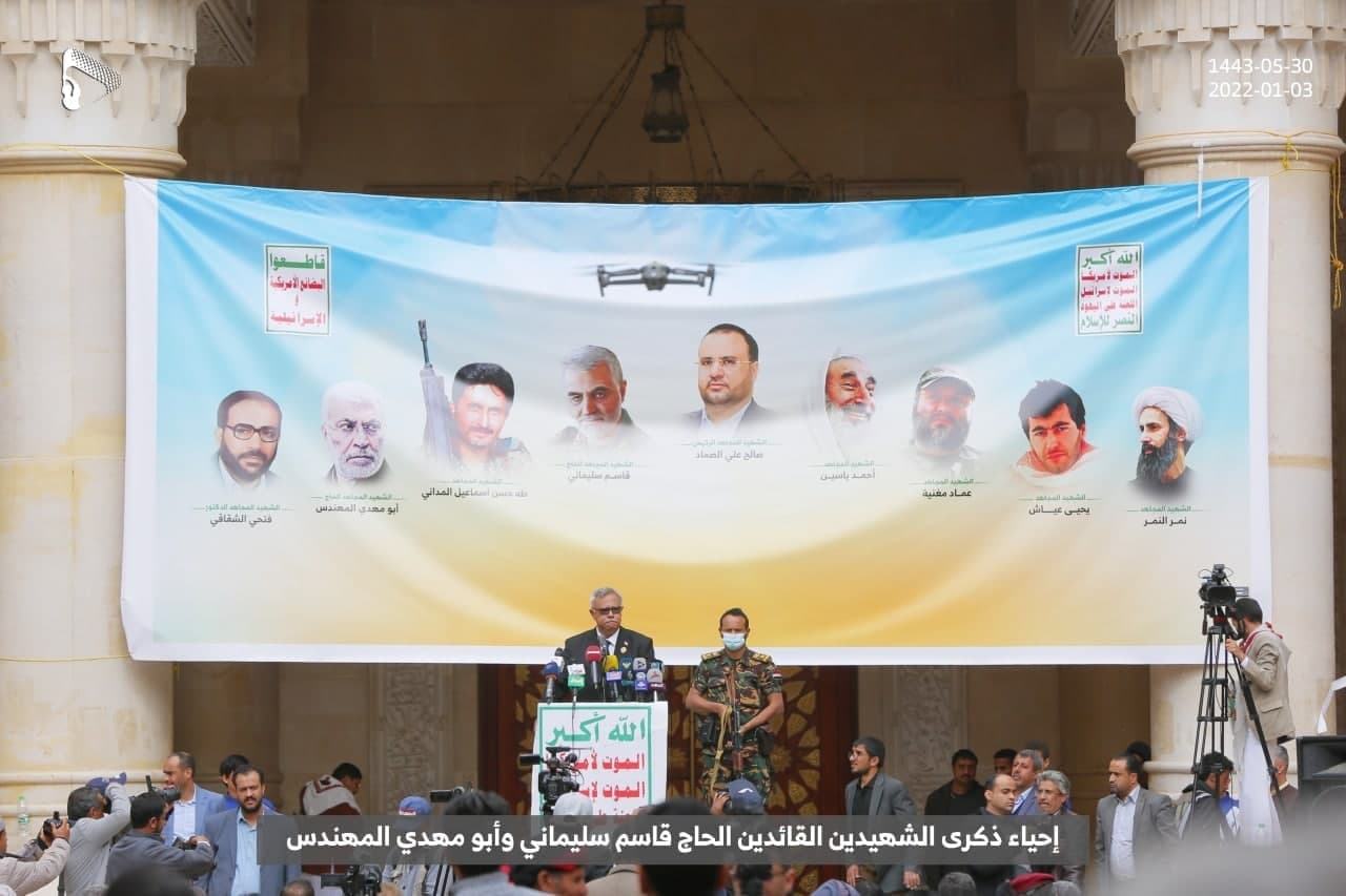أقيمت في العاصمة صنعاء، اليوم الإثنين، فعالية رسمية وشعبية حاشدة إحياء لذكرى الشهيدين القائدين الحاج قاسم سليماني قائد فيلق القدس والحاج مهدي المهندس نائب قائد الحشد الشعبي العراقي.
