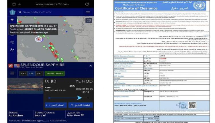 وأكد المتوكل أن التحالف اقتاد السفينة قسرا إلى قبالة جيزان بالرغم من تفتيشها وحصولها على تصاريح أممية وبذلك يرتفع عدد السفن المحتجزة الى 5 سفن نفطية.