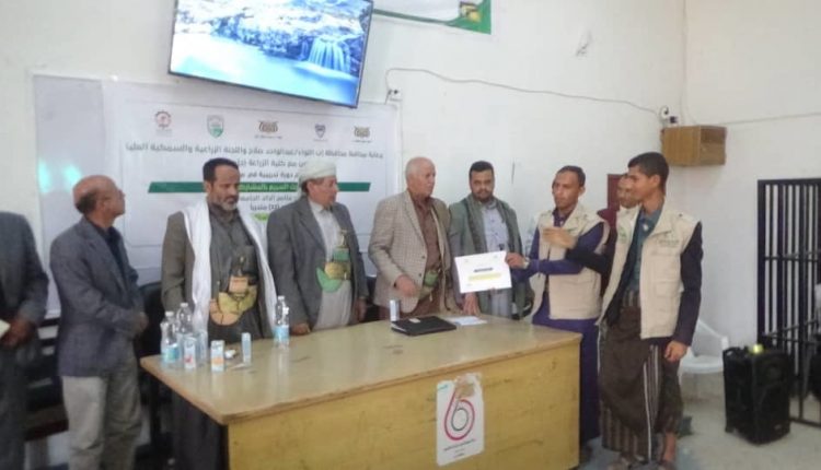 تخلل الاختتام بحضور أمين جامعة إب عبدالملك السقاف، ومديري مكتب الزراعة والري بالمحافظة المهندس حمود الرصاص والوحدة التنفيذية الزراعية يحيى الرميشي، ورئيس فرع الاتحاد التعاوني الزراعي حمدان القفاز، كلمة للمشاركين، وقصيدة شعرية، وتوزيع الشهادات التقديرية على المشاركين في الدورة.