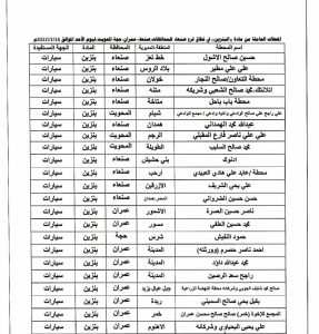 تعرف على أسماء المحطات التجارية العاملة ليوم غدا الأحد 16 يناير 2022م, في أمانة العاصمة ومحافظات صنعاء وعمران وحجة والمحويت وتعز.