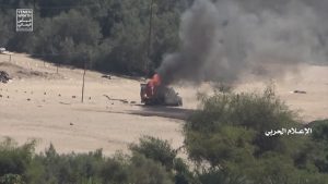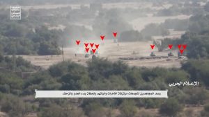 وكشفت المشاهد عملية تدمير عدد كبير من المدرعات والأليات المحملة بالمرتزقة بالصواريخ الموجهة وقذائف الأر بي جي بيد مجاهدي الجيش واللجان الشعبية الذين تعاملوا بكل حرفية مع تحركات قوى الارتزاق.