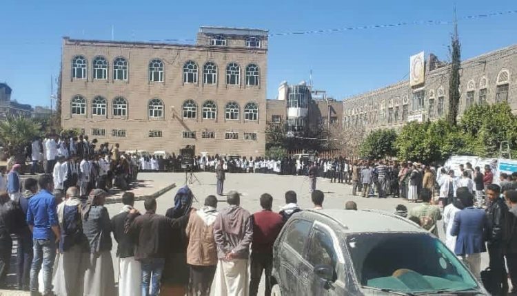 وخلال تقديم القافلة نظم منتسبو القطاع الصحي وقفة احتجاجية للتنديد بتصعيد تحالف العدوان في استهداف المنشآت الصحية والحيوية واستمرار الحصار ومنع دخول المشتقات النفطية.