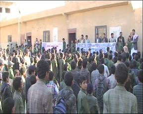 نظم بمدرستي النهضة والخنساء بمديرية جبل يزيد بمحافظة عمران اليوم  السبت 12 ديسمبر 2015 ، وقفة احتجاجية تنديدا باستمرار العدوان السعودي الأمريكي وما يفرضه من حصار جائر على اليمن.
