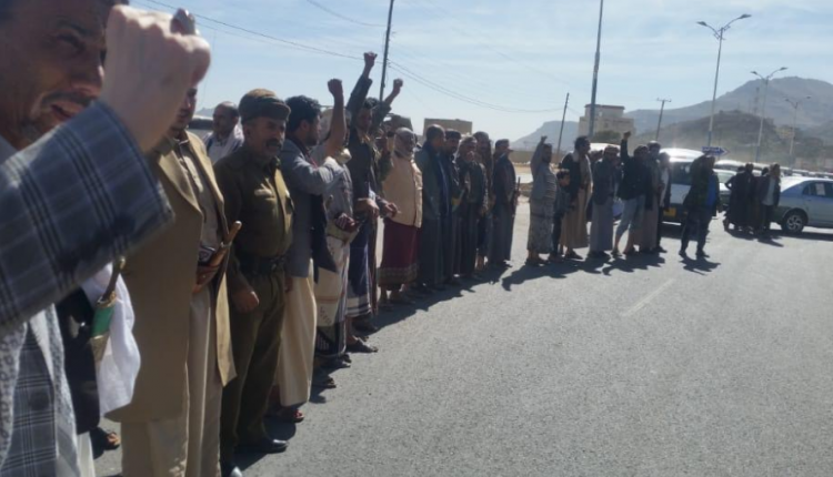 نظمّت في منطقة العشاش بمحافظة صنعاء، اليوم وقفة احتجاجية للتنديد بجرائم وتصعيد العدوان الأمريكي السعودي الإماراتي.