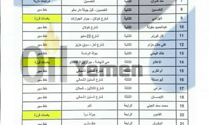 ونشرت شركة النفط اليمنية كشوفات بأسماء المحطات التجارية العملة ليوم غدا الأحد 6 نوفمبر 2022م في ” بنزين – ديزل ) في أمانة العاصمة وعدد من المحافظات.