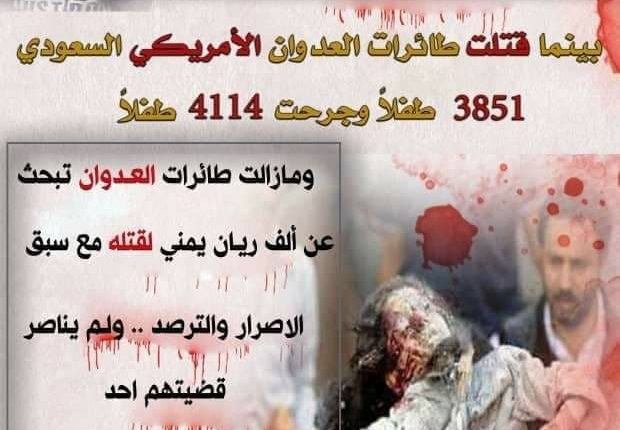 وفي الفترة الأخيرة فقط، أي منذ بداية سنة 2022، تسببت الغارات التي شنها العدوان الأمريكي السعودي الاماراتي بمقتل أكثر من 4 آلاف طفل، فما ذنب هؤلاء؟