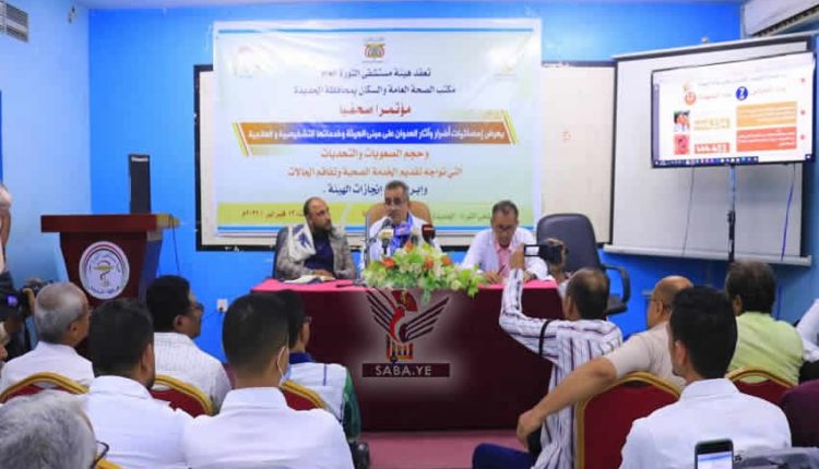 مؤتمر صحفي بهيئة مستشفى الثورة بالحديدة حول أضرار العدوان والحصار