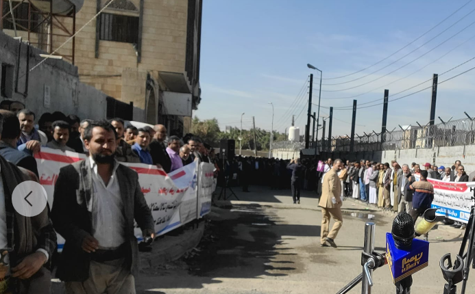 نظم موظفو قطاع وشركات الاتصالات والبريد اليوم، وقفة احتجاجية أمام مكتب الأمم المتحدة بصنعاء للتنديد باستمرار تحالف العدوان الأمريكي السعودي الإماراتي في احتجاز سفن المشتقات النفطية .