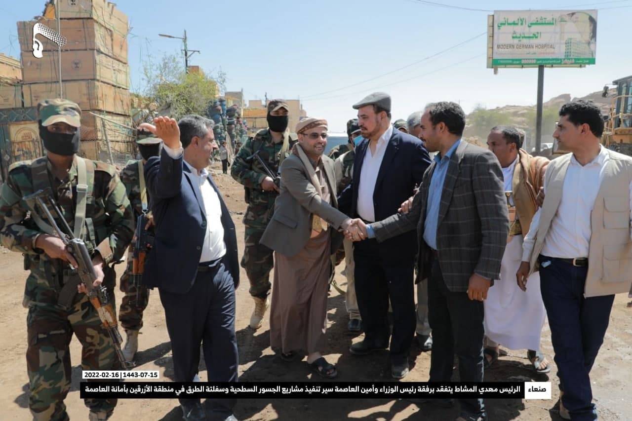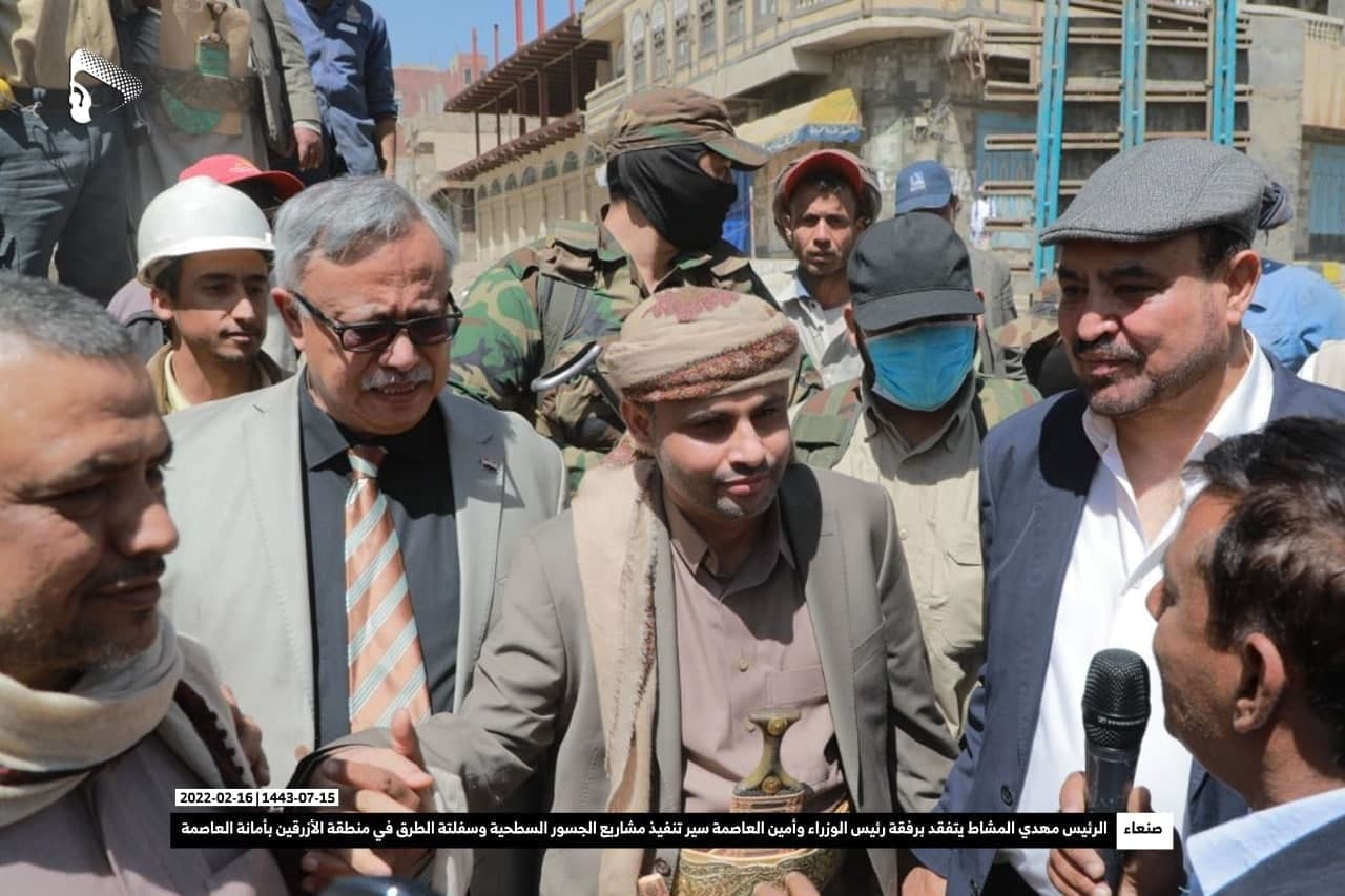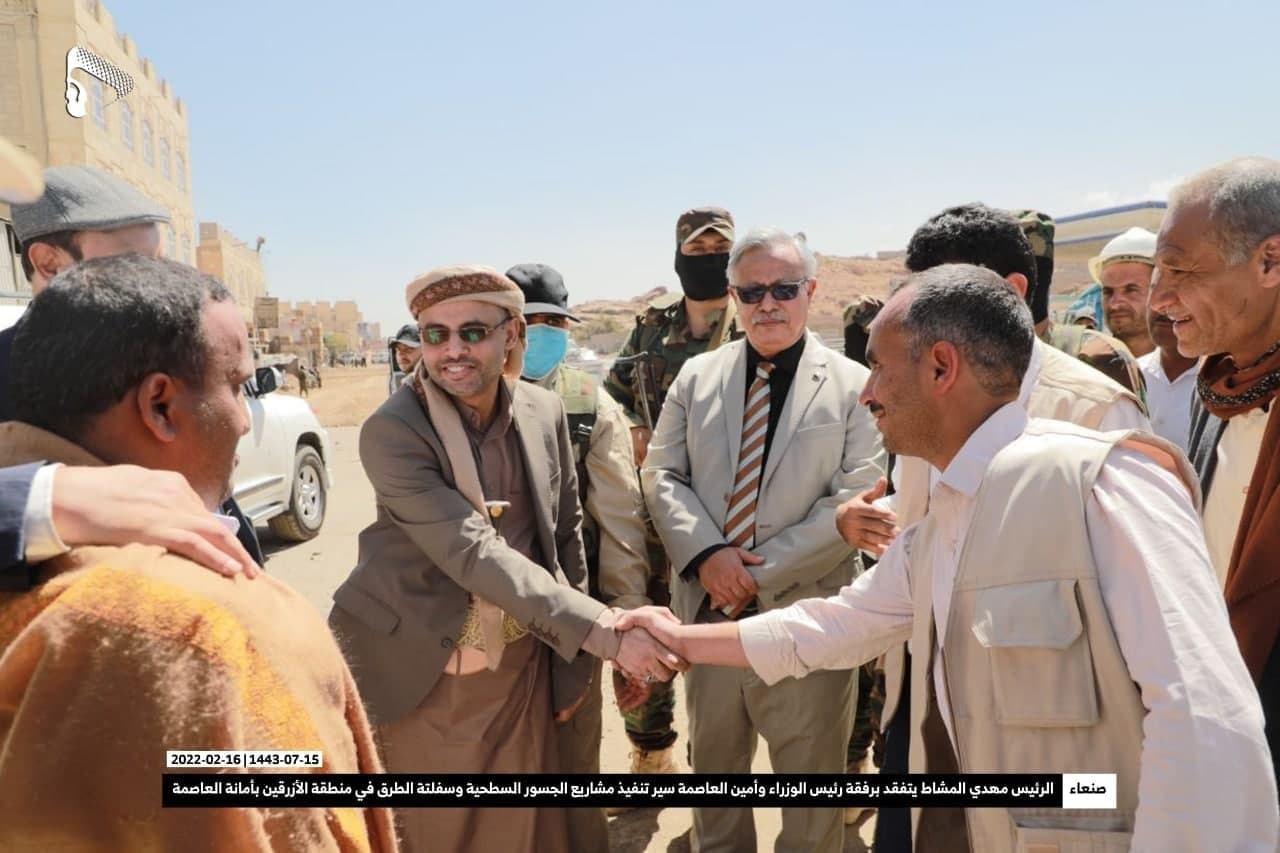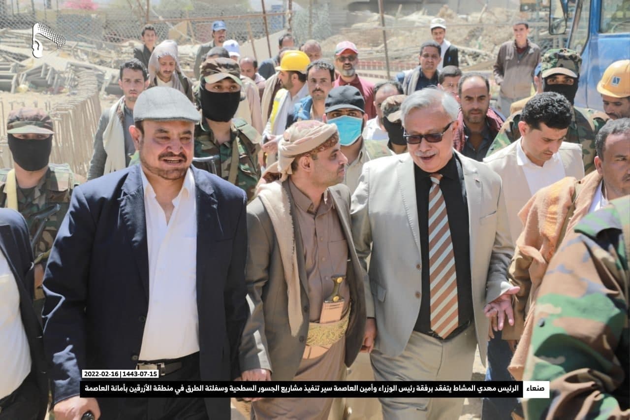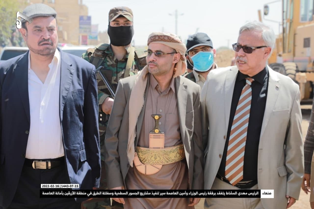 تفّقد فخامة المشير الركن مهدي المشاط رئيس المجلس السياسي الأعلى وبرفقته رئيس الوزراء الدكتور عبد العزيز بن حبتور وأمين العاصمة حمود عباد أمس الأربعاء، سير تنفيذ مشاريع الجسور السطحية وسفلتة الطرق في منطقة الأزرقين بأمانة العاصمة التي تُعد مدخلا لأربع محافظات إلى الأمانة.