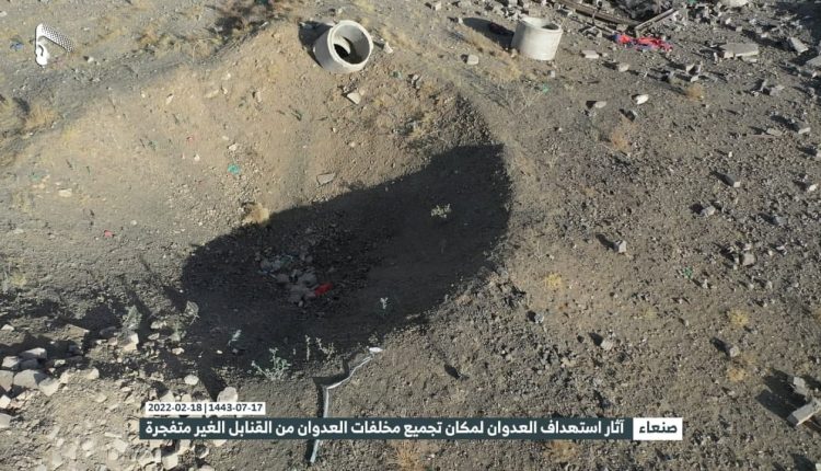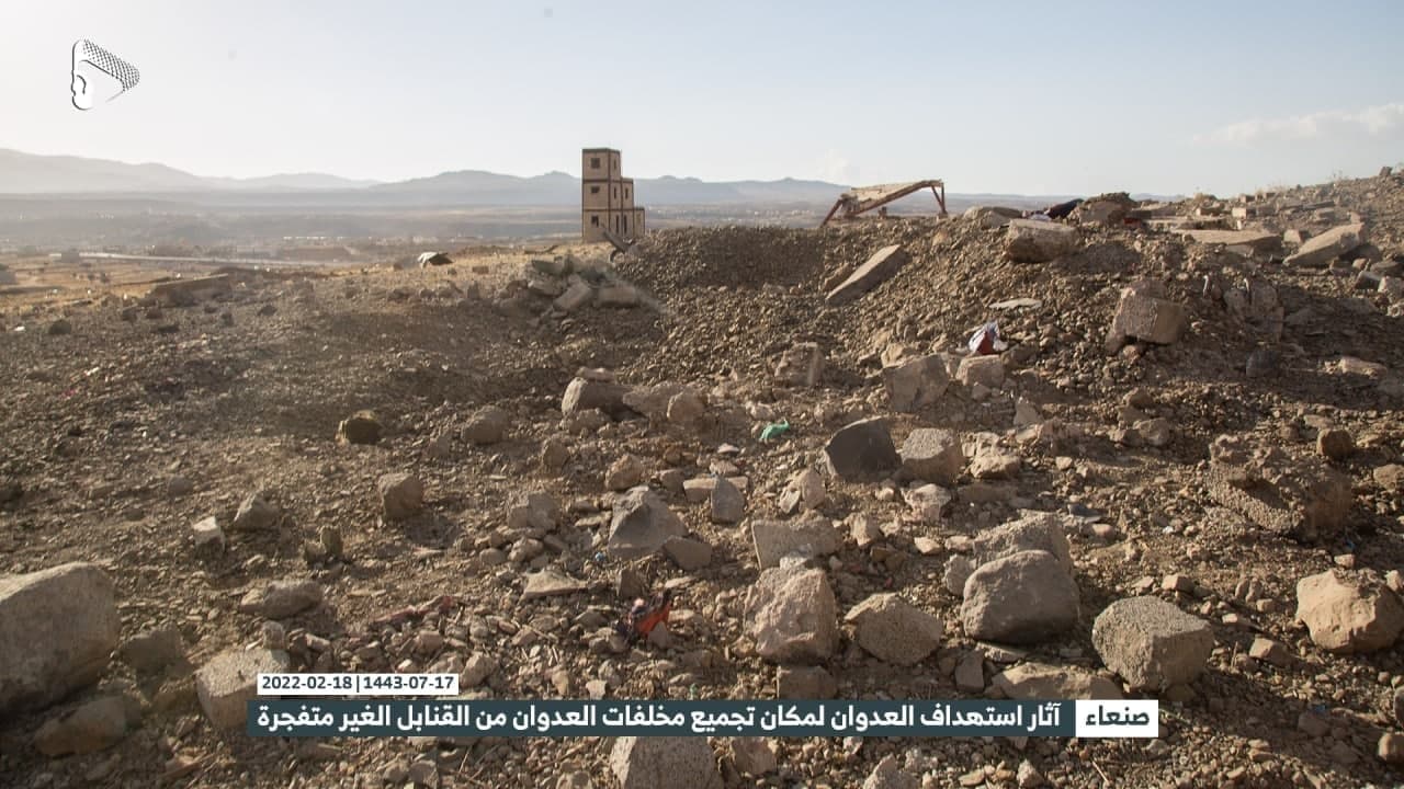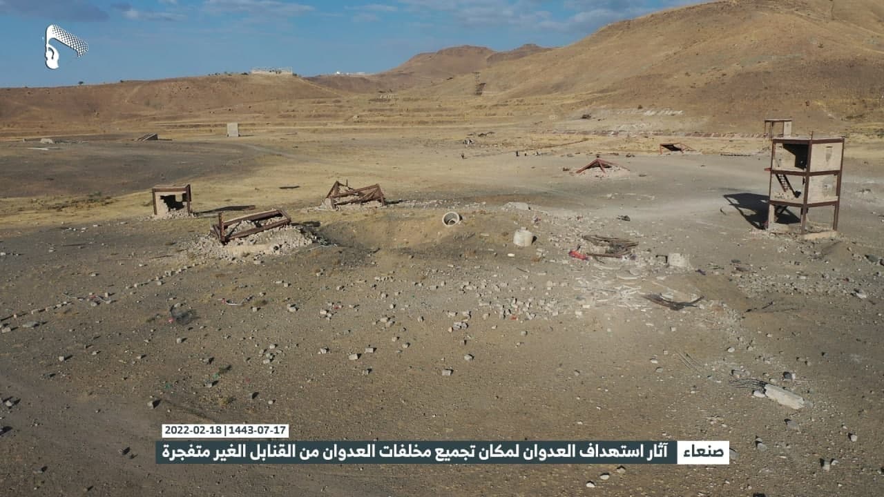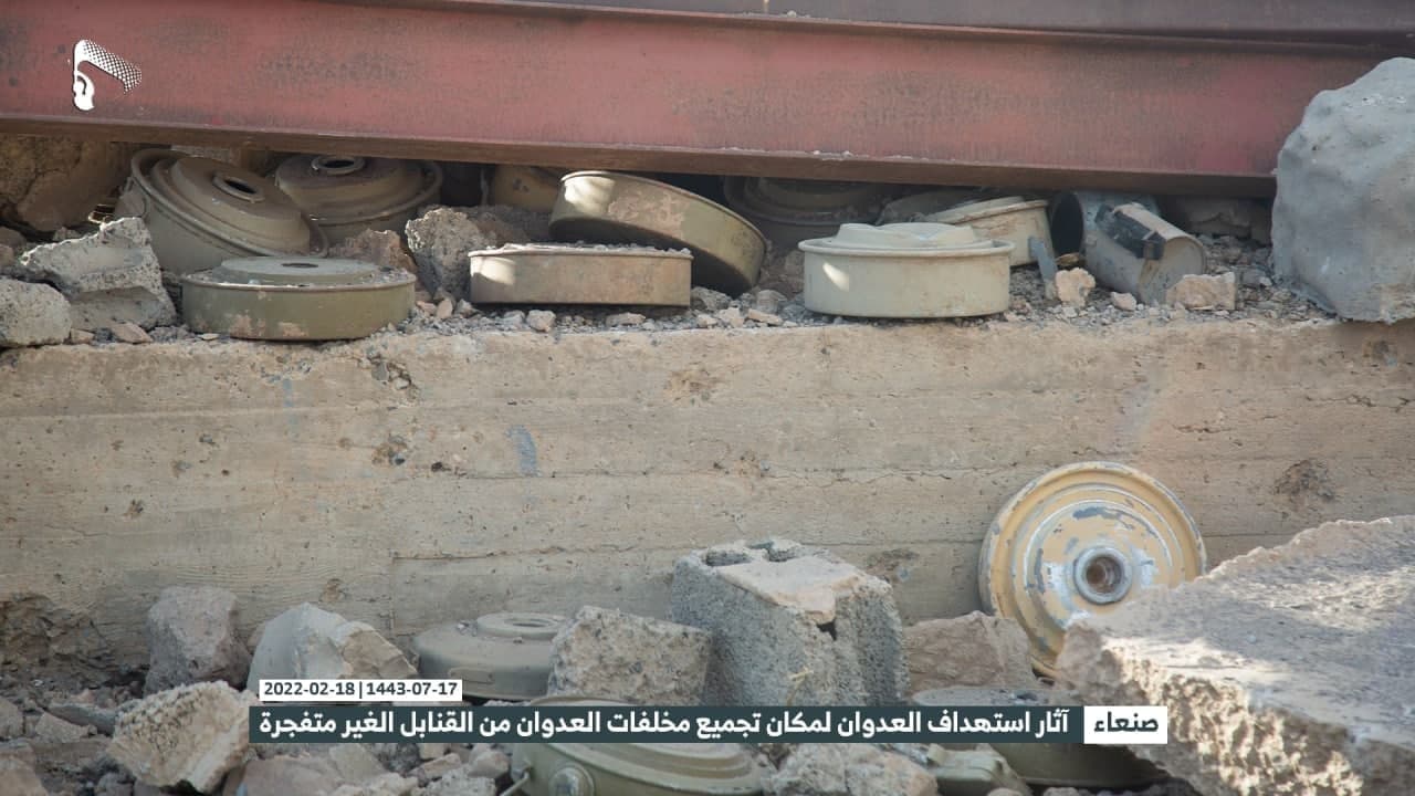 من جهتها، زارت وكالة الأنباء اليمنية “سبأ”، مكان تجميع مخلفات العدوان من الغارات الجوية والقنابل العنقودية، التابع للمركز التنفيذي للتعامل مع الألغام، الذي قصفه طيران العدوان الأمريكي السعودي الإماراتي فجر يوم الجمعة.