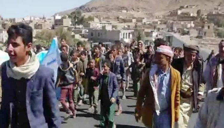 مديرية بلاد الروس بصنعاء تشهد مسيرة احتجاجية طلابية تنديداً بجرائم وتصعيد العدوان
