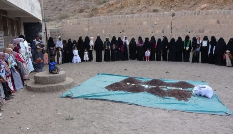 وخلال تقديم القافلة التي تضمنت عشرة أقداح من البُن و400 ألف ريال، نظمت نساء المنطقة وقفة احتجاجية للتنديد بتصعيد العدوان وجرائمه وترويع المدنيين وتشديد الحصار على الشعب اليمني.