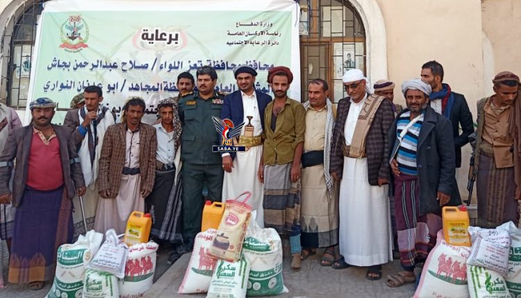 توزيع 480 سلة غذائية لأسر الأسرى والمعاقين والمفقودين بتعز