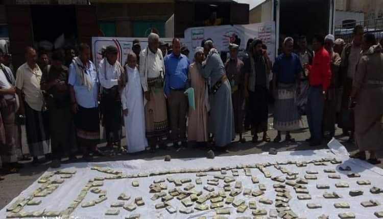 القافلة تضم 232 كيسا من حبوب الذرة، وكمية من المياه والعصائر والمواد الغذائية المتنوعة، إضافة إلى كمية من العسل البلدي، و20 مليون ريال نقدي.