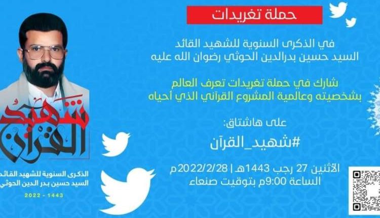 ودعا المنظمون للحملة، إلى المشاركة في حملة التغريدات لتعريف العالم بشخصية الشهيد القائد وعالمية المشروع القرآني الذي أحياه على هاشتاق: