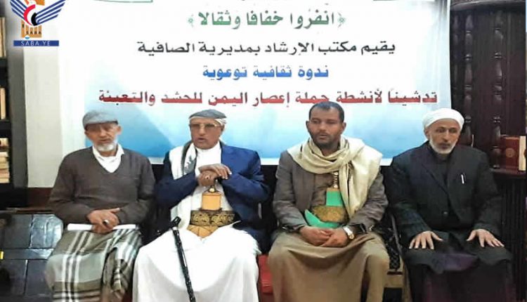 دشنت في مديرية الصافية بأمانة العاصمة اليوم، حملة وقافلة إعصار اليمن للتحشيد والاستنفار للجبهات، بفعالية ثقافية بعنوان “انفروا خفافا وثقالا” بالتزامن مع ذكرى الشهيد القائد.