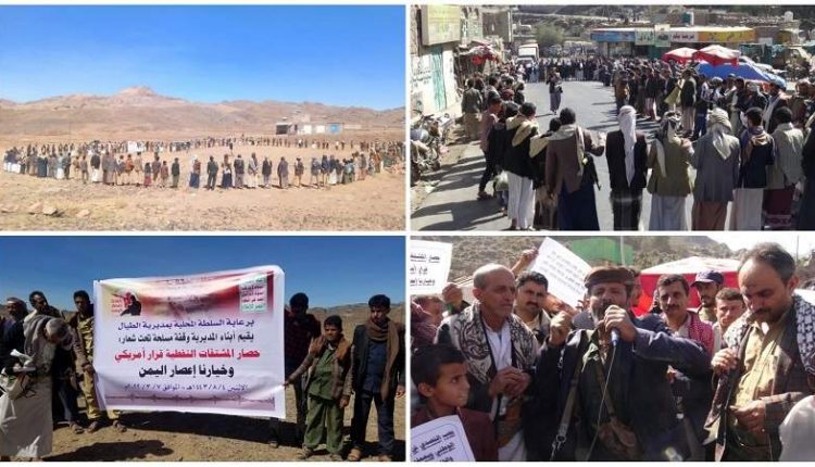 شهدت مديريات الطيال وجحانة والحصن وبني مطر والحيمة الخارجية ومناخة وبلاد الروس، اليوم الإثنين، مسيرات حاشدة تنديدا بحصار المشتقات النفطية، واستمرار العدوان والحصار الخانق تحت شعار “حصار المشتقات النفطية قرار أمريكي وخيارنا إعصار اليمن”.