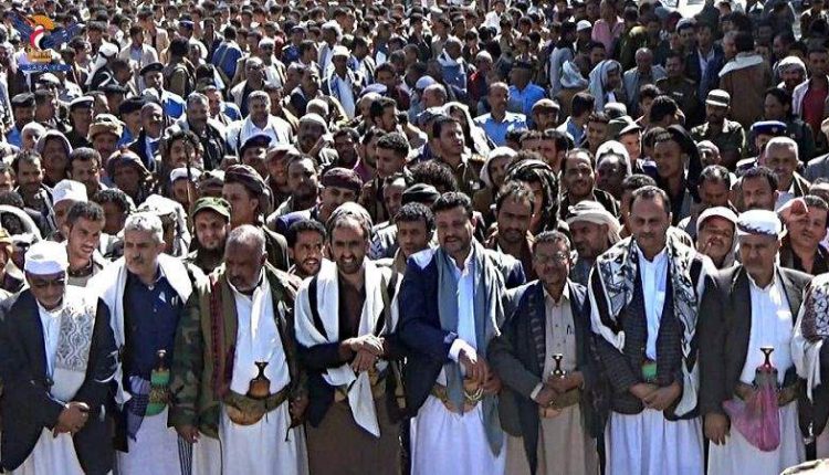 إلى ذلك شهدت مديرية ماوية مسيرة جماهيرية حاشدة تحت شعار “حصار المشتقات النفطية قرار أمريكي وخيارنا إعصار اليمن”.