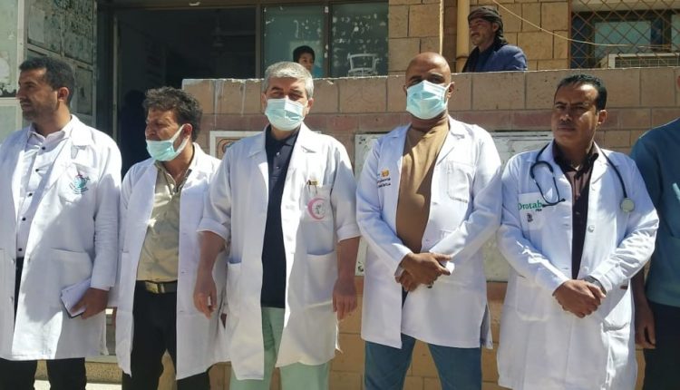 نظم موظفو مستشفى الشهيد محمد الدرة بمديرية جحانة محافظة صنعاء، اليوم وقفة احتجاجية تنديدا باستمرار القرصنة البحرية لتحالف العدوان الأمريكي السعودي الإماراتي واحتجاز سفن المشتقات النفطية.