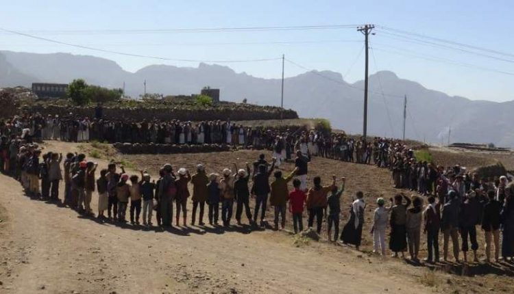 مسيرة ووقفة في مناخة بصنعاء تنديدا بجرائم وحصار العدوان
