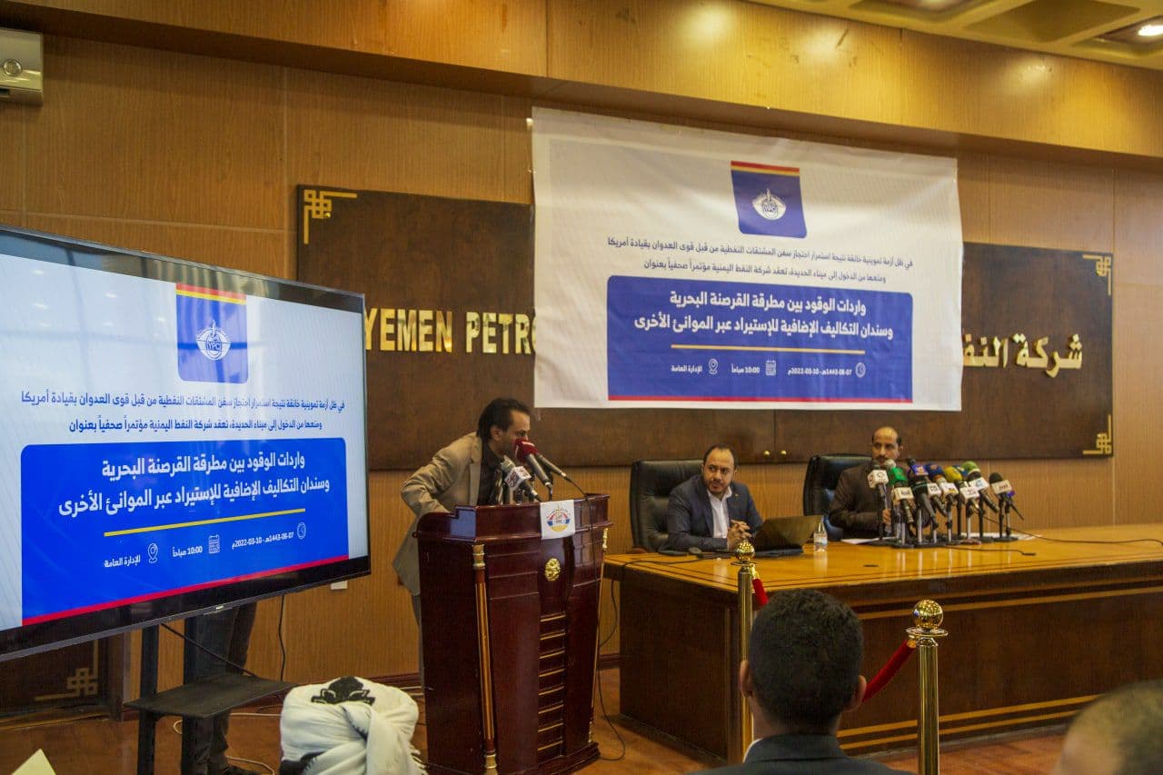 وخلال المؤتمر الصحفي، أكد المدير التنفيذي للشركة المهندس عمار الأضرعي، أن المؤتمر يأتي في ظل الوضع الاستثنائي غير المسبوق الذي يمر به الشعب اليمني بسبب استمرار العدوان والحصار الممنهج من قبل تحالف العدوان بقيادة أمريكا.