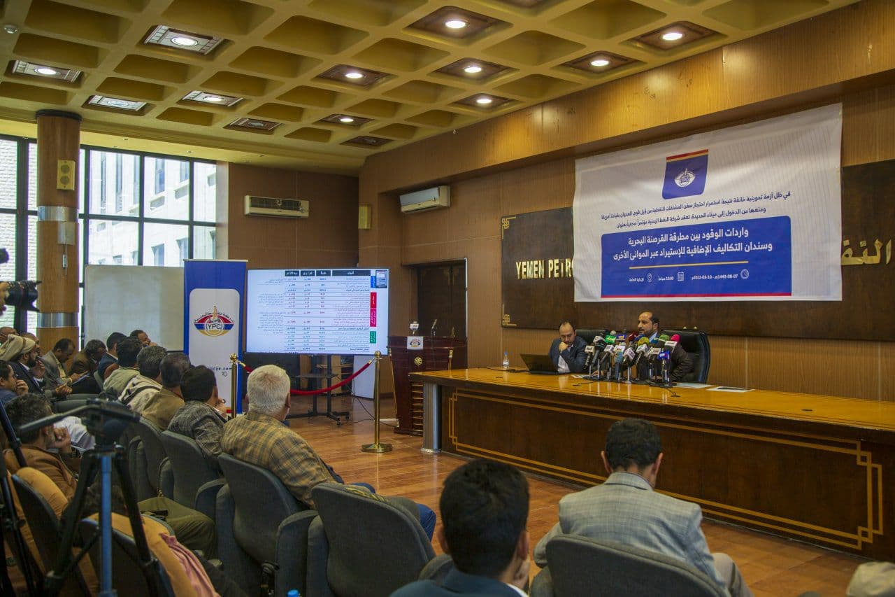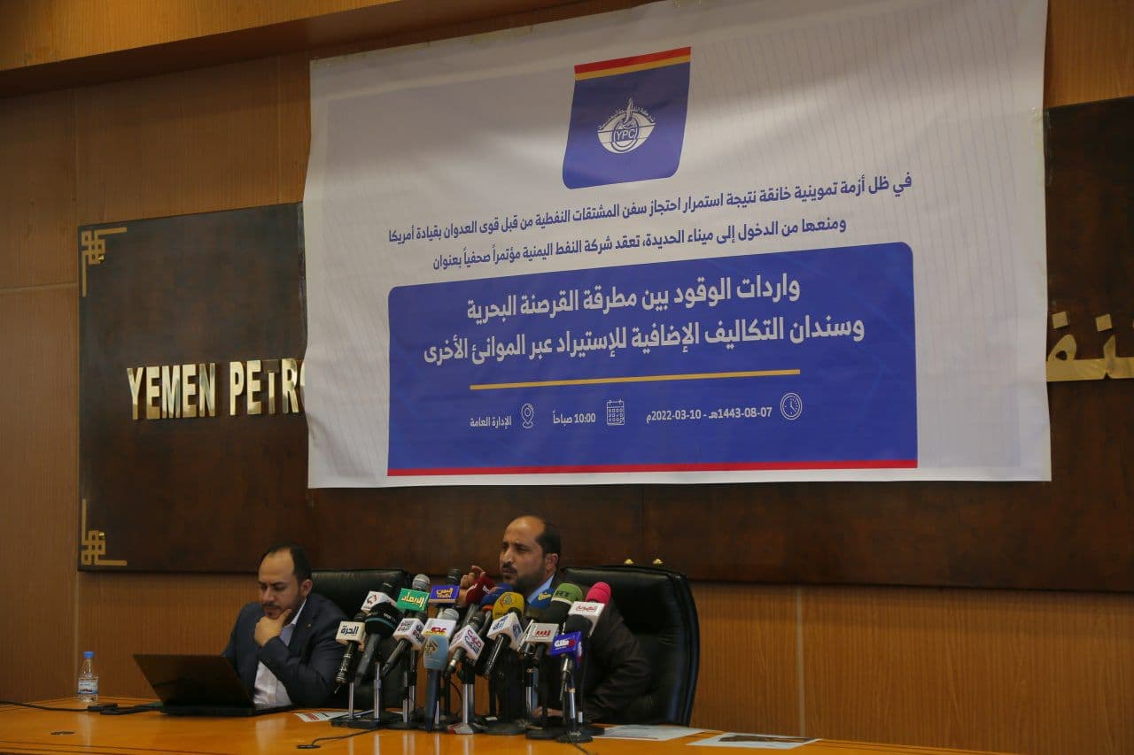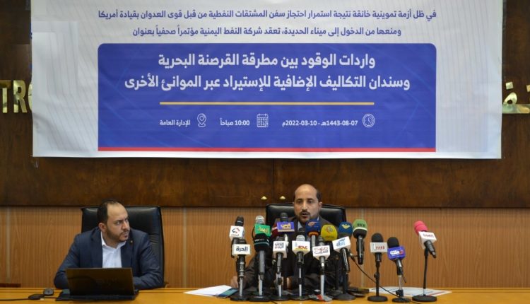 وكشفت شركة النفط اليمنية، في مؤتمر صحفي عقدته اليوم بالعاصمة صنعاء بعنوان “واردات الوقود بين مطرقة القرصنة البحرية وسندان التكاليف الإضافية للاستيراد عبر الموانئ الأخرى، عن تحويل تحالف العدوان ملف النفط إلى سلاح رئيسي في الحصار والحرب الإقتصادية على الشعب اليمني، وأكدت أنها لا تمنع ولم تمنع وصول الناقلات إلى العاصمة صنعاء والمناطق الحرة، وأنه مسموح لها بالدخول للبيع بالسعر العادل، مستدركة بالقول إنه لا يمكن السماح لها بالبيع في السوق السوداء.
